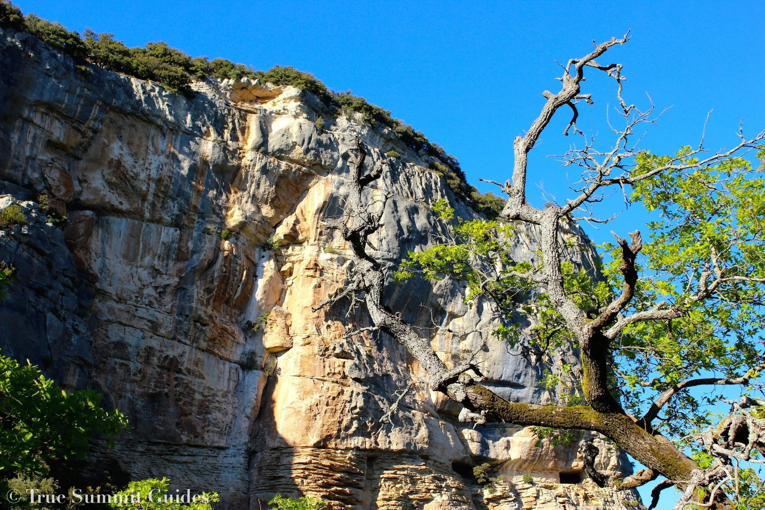 Our introduction to Provençal rock climbing began with a local crag just 20 minutes away from home. With a couple weeks of rest under our belts after our busy ski trip, the small roadside cliff near the quaint town of Mirabeau served as an excellent warm up crag for a quick return to fitness. Great for local beginners to hone their skills, the routes at Pont Mirabeau offer a fun collection of easy climbing on decent limestone. The views of the old bridge towers on each bank of the Durance River instill a feeling of historic presence while you clip your way up 15-25 meter lines of polished rock. Within a few afternoons we had pretty well ticked off the routes available and had received a rejuvenated strength to tackle larger objectives.